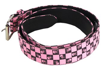 Textilní opasek s lebkami, vnitřní strana eko kůže. Obvod pasu 95 cm. Šířka: 3,5 cm. Made in EU.